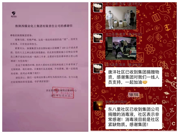 近日,不断有雁塔、碑林、长安、高新、未央等区域的各个社区,向陕煤集团送来感谢信,这不仅是社会群众对陕煤志愿者们始终冲锋在防疫一线的肯定,更是对陕煤集团不断伸出援手,奉献爱心,认真履行社会责任的鼓励和支持。